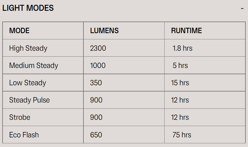 the powerful 2300 lumen beam offers a clear, bright light to navigate