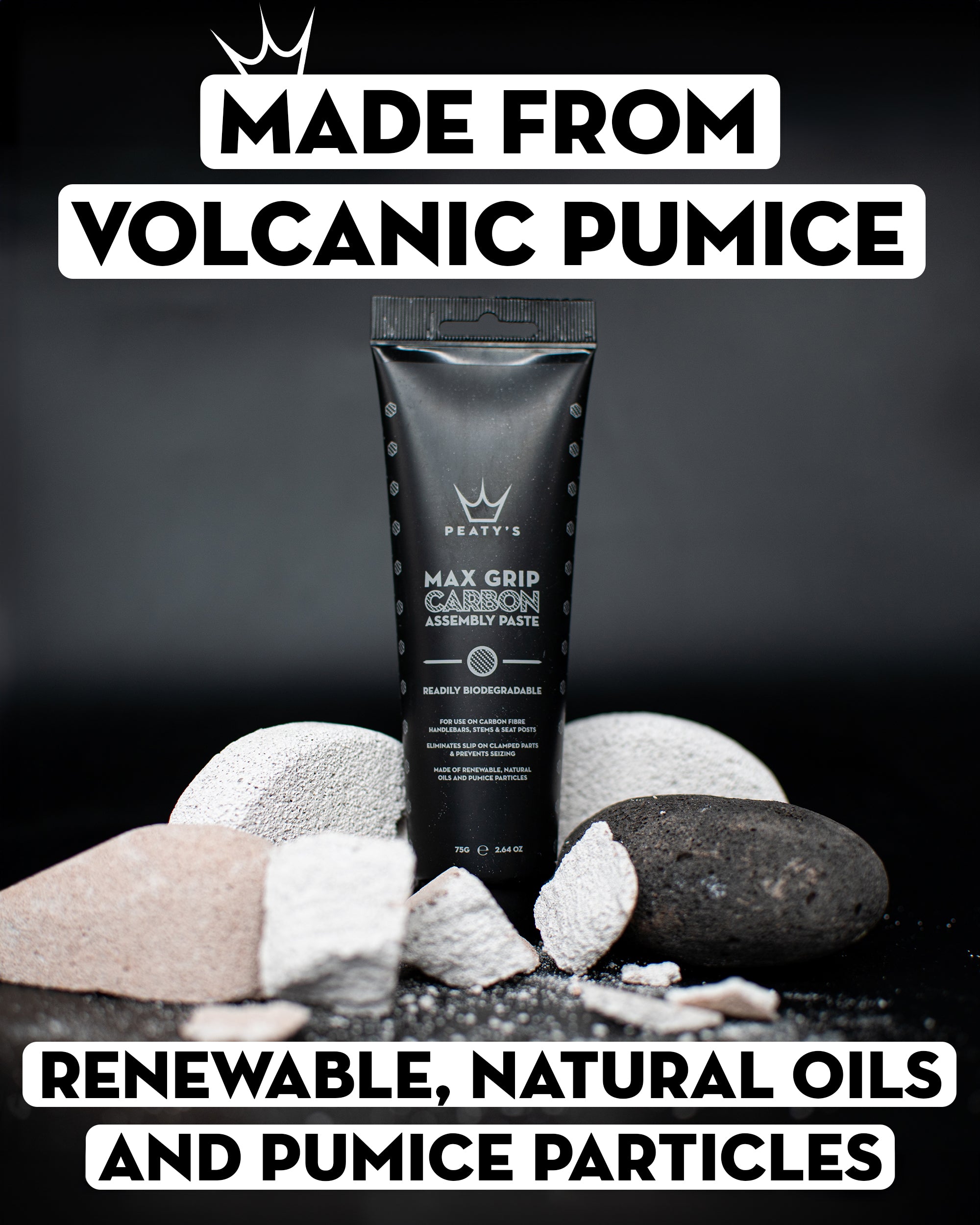Ideal for use on carbon fibre handlebars, stems and seat posts, our carbon assembly paste is a specially formulated blend of 100% renewable, natural oils and ultra-fine non-slip pumice particles.